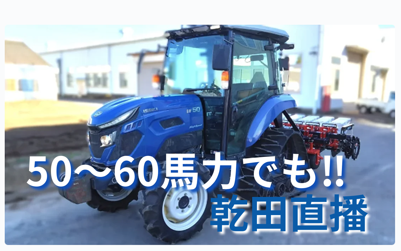 中型トラクター向け乾田直播作業機のご紹介 2026/2/13 乾田直播といえば大きい圃場で大きい作業機を使うイメージが定着していますので、「ウチは圃場が小さいから無理かな」と諦めている方も多いと思います。そんな方にピッタリな、比較的取り回しのいい50~60㎰程度のトラクターで使える作業機をご紹介します。 乾田直播トラクタ作業機大規模 井関農機(株)