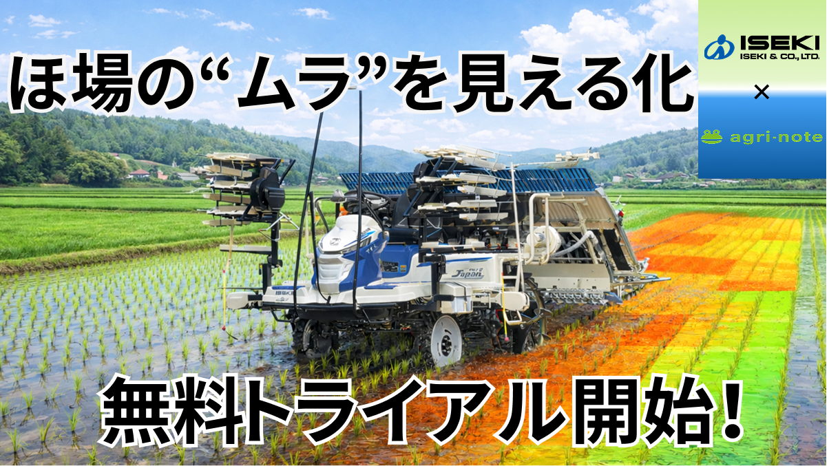 無料で今すぐ!スマートな施肥を試せます「アグリノート衛星リモートセンシングサービス(お試し版)」の開始! 2026/4/20 圃場ごとの生育ムラを「見える化」し、作業の最適化につなげる新たな取り組みとして、アグリノート株式会社が提供する「アグリノート衛星リモートセンシングサービス(お試し版)」がスタートしました。高精度画像も無料なのは今だけ! 可変施肥マップ連動田植機 井関農機(株)
