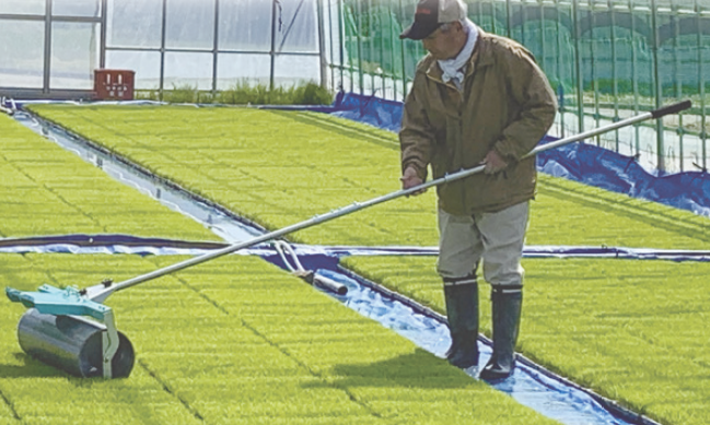 播種機の次に紹介いただいたのは、育苗の過程で使用する育苗ローラーです。