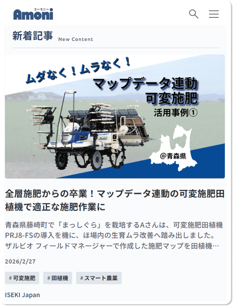 ヰセキのマップデータ連動可変施肥機能を搭載した【PRJ8-FS】は全国各地で活躍しています!