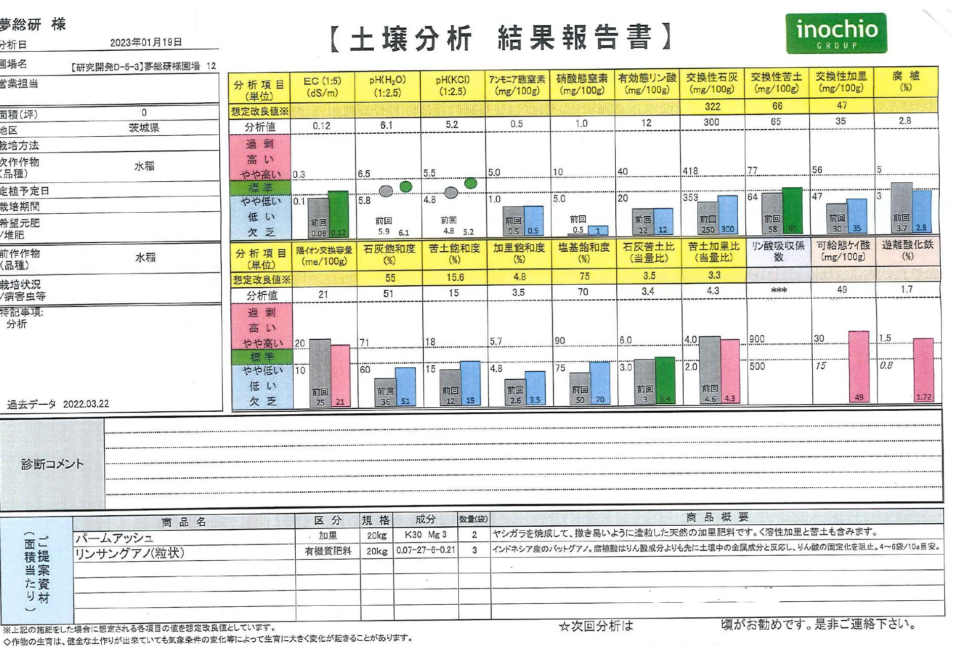 有機栽培2年目の作付前に土壌分析を実施したところ、前年と比較して多くの項目で数値が改善しており、初年度の土壌改良の効果が確認されました。