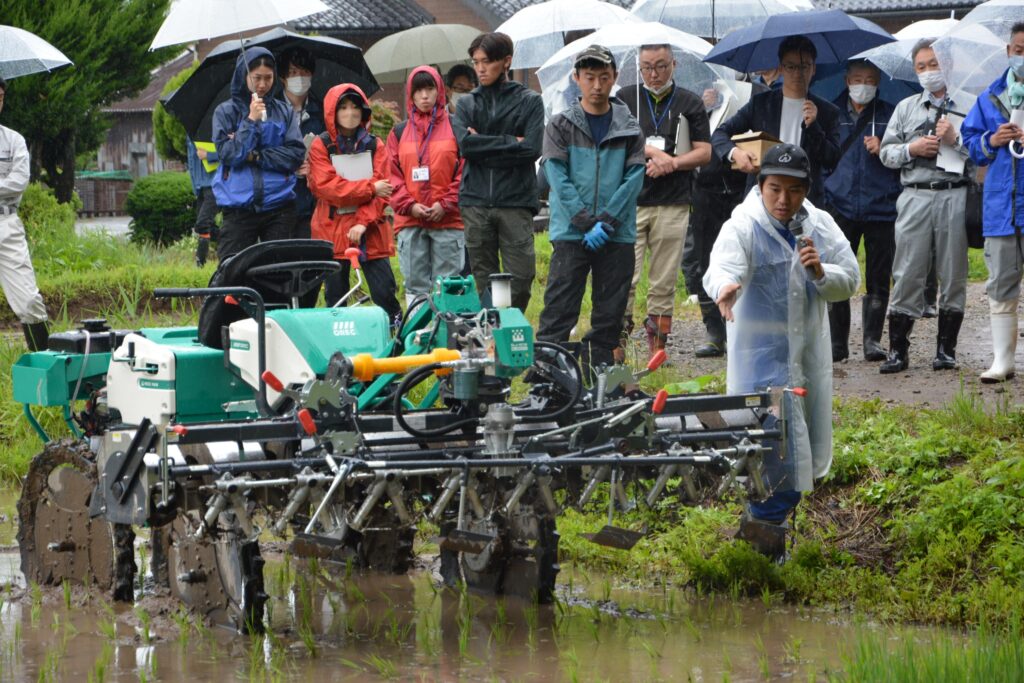 にかほ市をフィールドに環境保全型農業の実装に取り組みました。取り組みのキーは有機栽培などの環境保全型農業と、省力化による生産性向上の両立です。水稲の有機栽培では雑草防除が工数大となり課題がありました。ヰセキでは機械面からサポートしていきました。