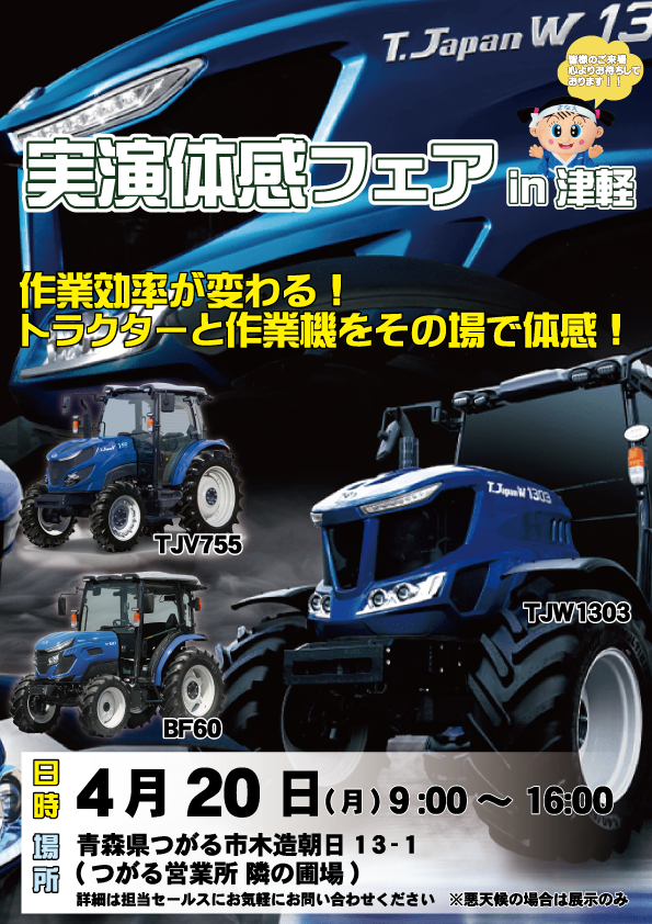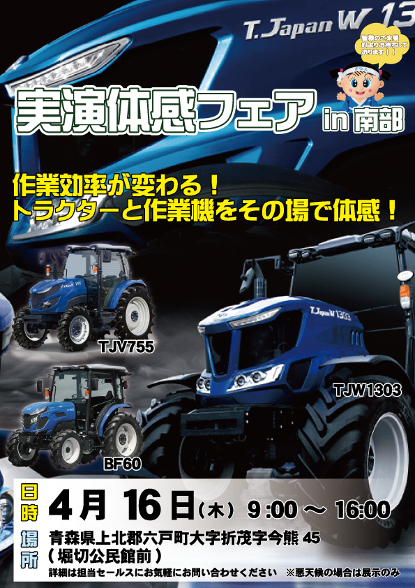 最新のトラクターや作業機をその場で体感できるチャンスです。皆様のお越しを心よりお待ちしております。