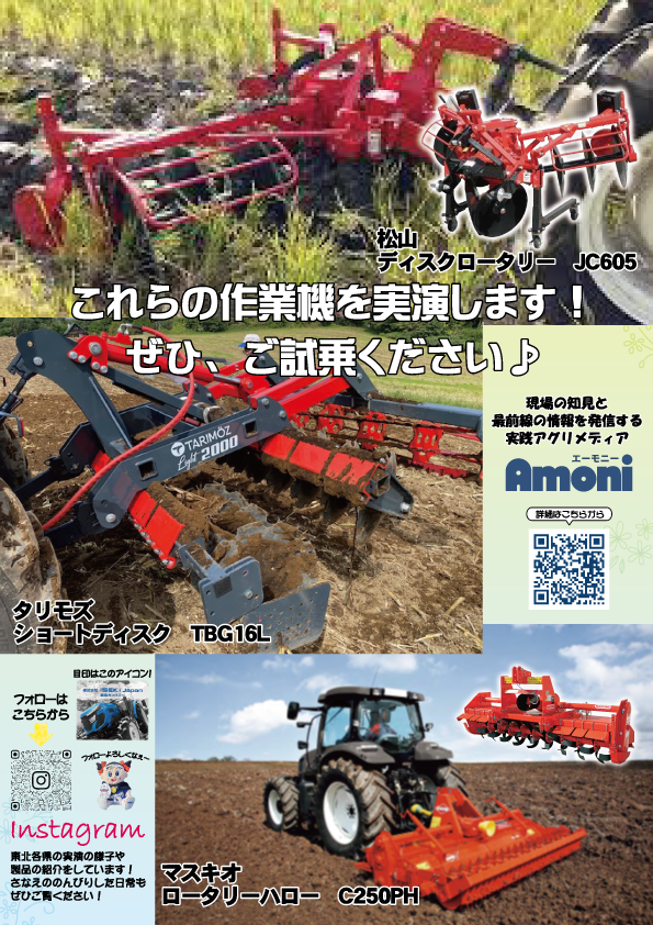 ショートディスクやロータリーハローなど、実演機もご用意してお待ちしております。