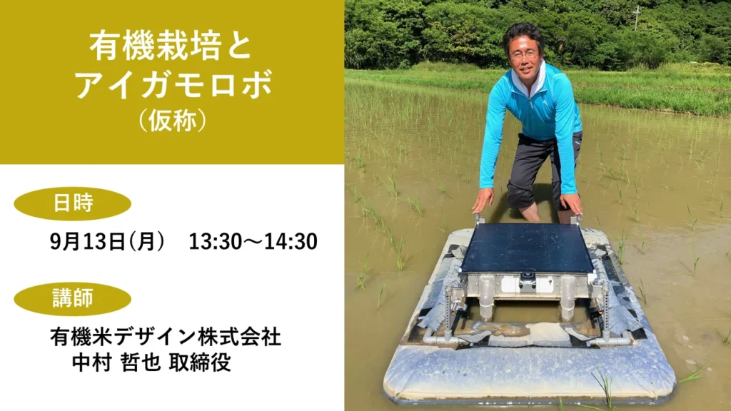 今回は有機米デザインの中村取締役よりアイガモロボ(仮称)の実証についてご紹介します。