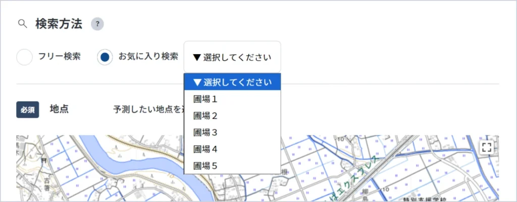 フリー検索は圃場地点、品種、移植・起算日、目標の積算温度などを都度入力して予測する方法ですが、アカウントを登録することで、これらの入力項目を圃場1~5までの最大5つを保存できるようになります。